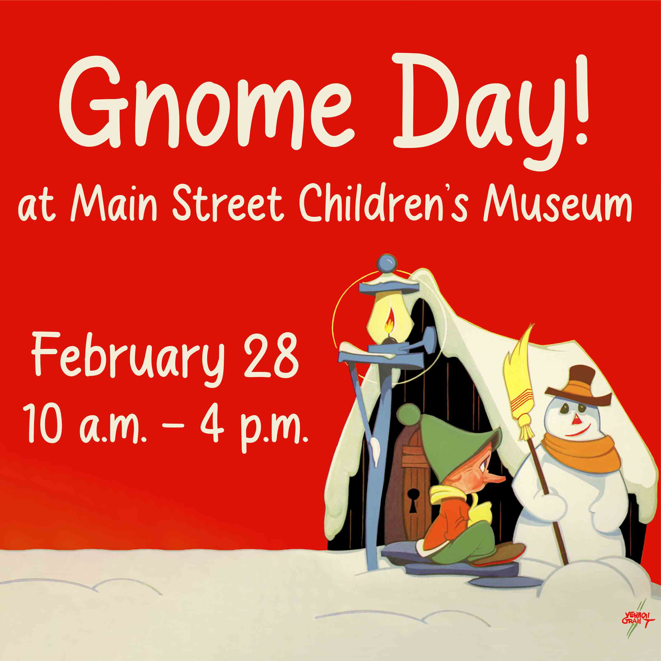 Come join us as we celebrate the artist whose work inspired our exhibits, Vernon Grant, and his love for Gnomes! Enjoy lots of fun as we bring his art to life. Do you want to dance and sing like Glen the Frog? Maybe you prefer to build a snowman like one of the Gnomes. With such a wide array of art and activities, there’s no shortage of fun for everyone.