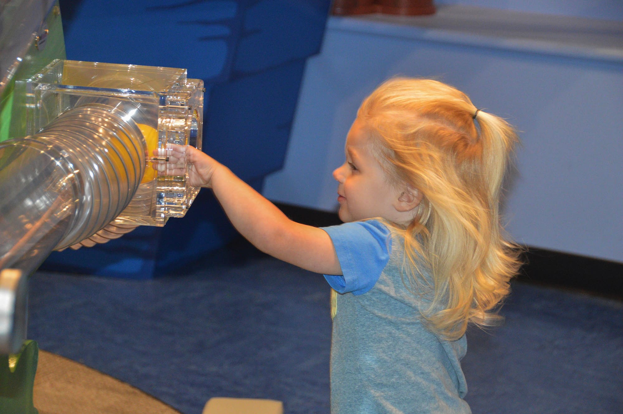 Whoosh! Send a ball or pouf through the Air Maze and see air power at work. Children can experiment by sending different items through the Maze, directing the object’s path along the way, and making predictions about where the object will fly out and whether it will float through the air or fall to the ground.
