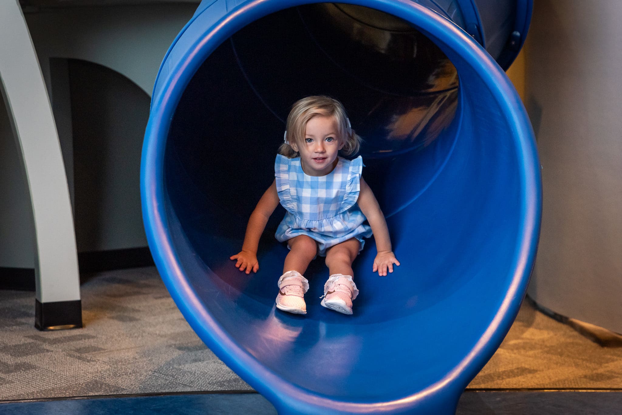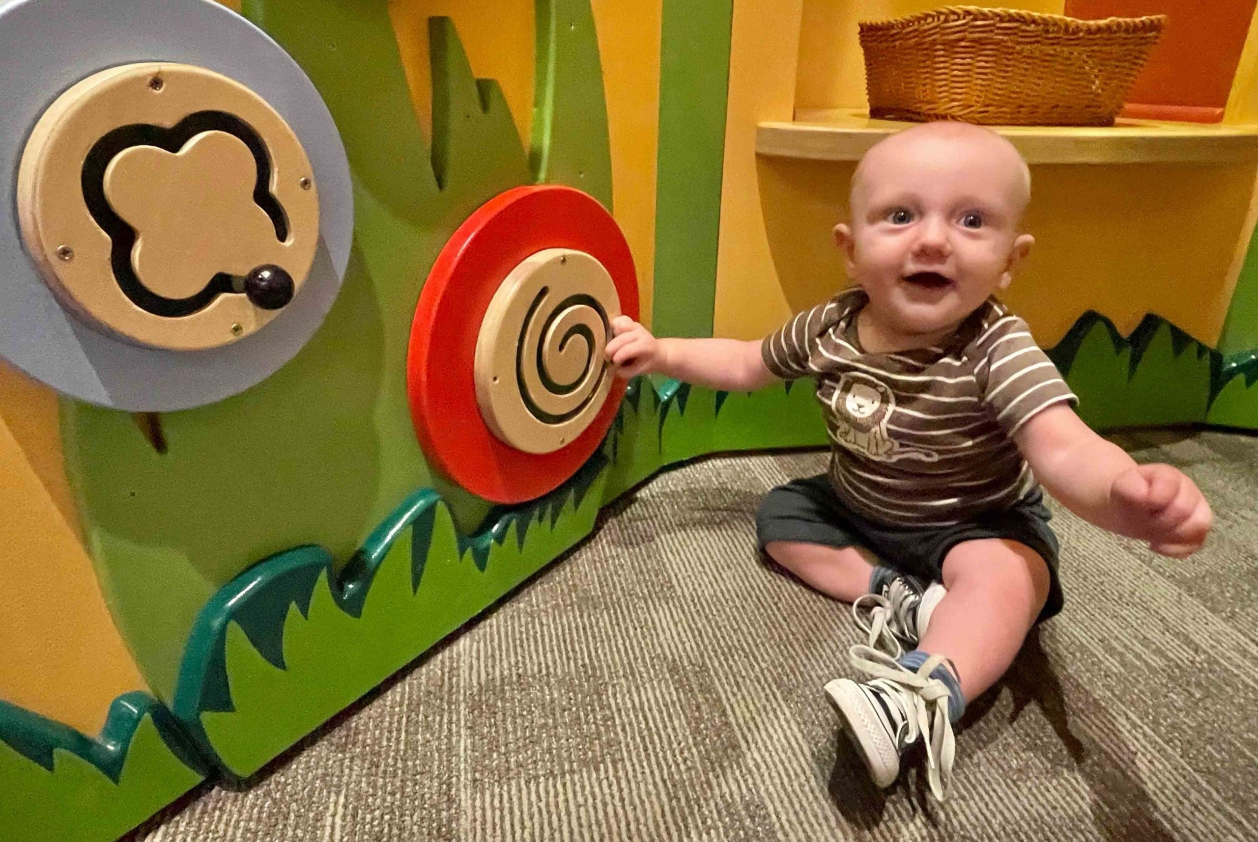 Snuggle up with your little ones and get cozy with a good book. Designed specifically with the earliest learners in mind (infants 6-15 months), this area promotes all facets of child development through the selection of books and toys. Babies understand language sooner than they can speak, and their ability to understand increases more rapidly than their ability to talk. Read out loud with silly voices or ask your child to point to an object on a page. For the safety of our youngest guests, we ask that families with older children use the area as a quiet reading nook when babies are not using it.