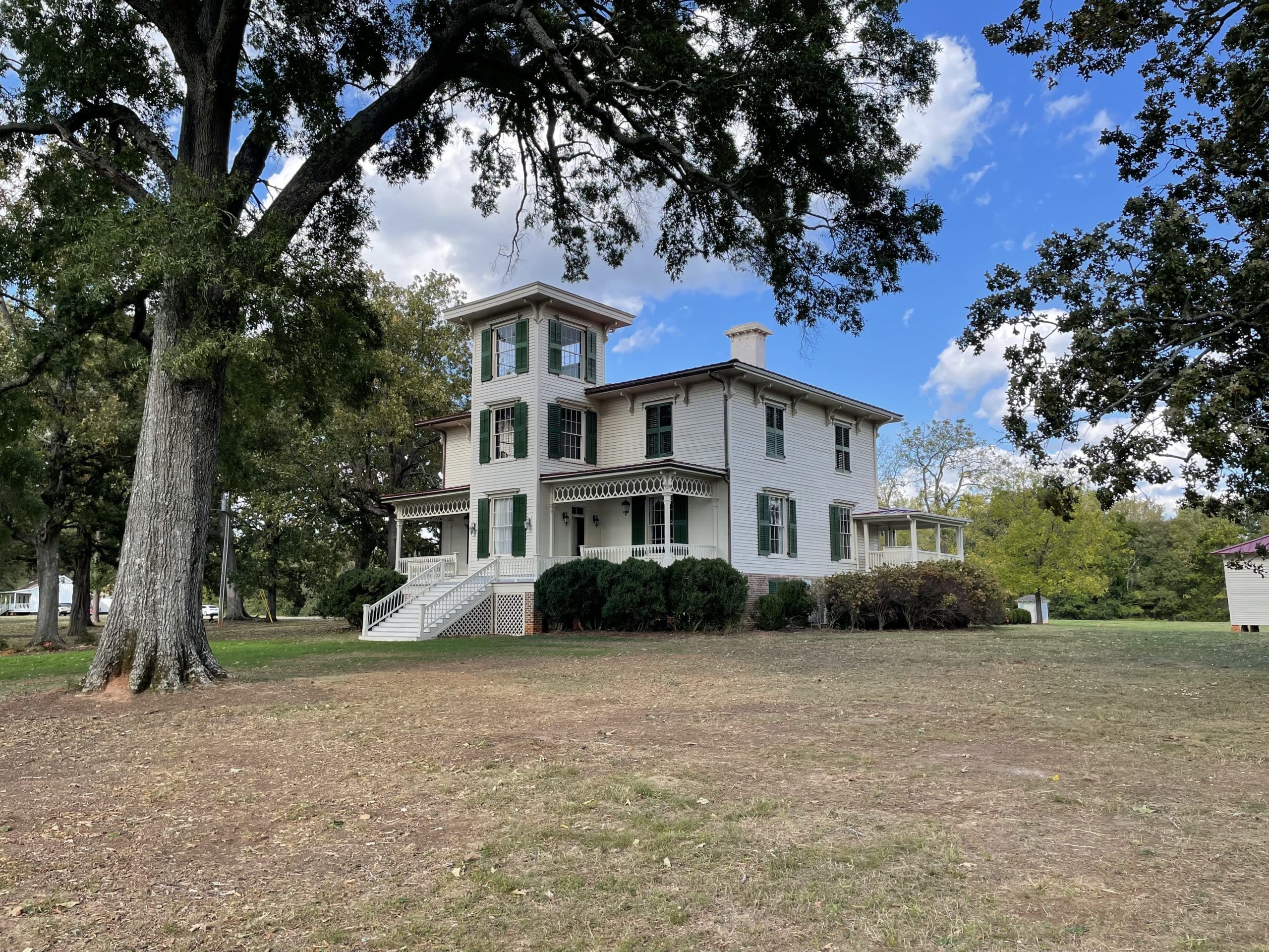 The two-story, Italianate house with three-story tower, was built on a raised basement by O.P. Cranford for John Simpson Bratton Jr. and his wife, Harriet Jane Rainey Bratton, between 1853 and 1854. Family manuscripts indicate that the house was first known as “Forest Hall.” However, by the mid-20th century, the house had become known as “High Tower Hall” for its iconic tower; subsequently abbreviated to “Hightower Hall,” as it is known today. In 1958, the house was purchased by Mr. and Mrs. R. F. Draper, from the heirs of the Bratton Family. Mr. Draper’s estate sold Hightower Hall and its surrounding acreage to Historic Brattonsville for its preservation in 1995.